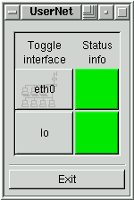 It's easy to start and stop network interfaces when using this tool. Every network interface available to users is displayed, along with a colored button representing its status (see Figure 3). Clicking on the interface's button toggles that interface (ie, turns it on when it is off, and vice versa). Clicking on the status info button forces an update on that interface's status (though the status will also update automatically). When done, click Exit to exit.