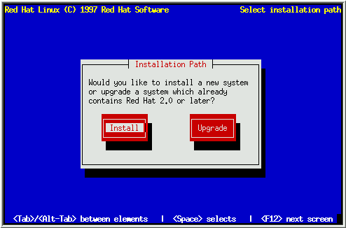 If you wish to upgrade your Red Hat Linux system, choose Upgrade.