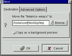 If the file you are moving is a symbolic link — that is, a virtual link to where the file actually resides (called a shortcut in some other operating systems) — you may select the Advanced Options tab and select Preserve symlinks. Selecting this will make sure the link is preserved despite the move.